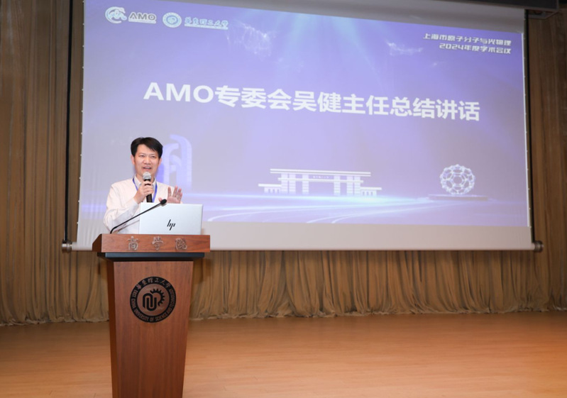 上海市原子分子与光物理专业委员会主任吴健教授在会议最后作了总结讲话。吴健对我校作为承办单位的精心筹备和辛苦付出表示诚挚的感谢,认为这是一次富有创新性的高质量年会。不仅为大家提供了非常好的学术交流机会,吸引了众多研究生参加,也增进了上海市和全国同行的互动交流,扩大了会议的影响力。此外,吴健主任还对下一届学术年会的举办及未来专委会的重点工作进行了布置。